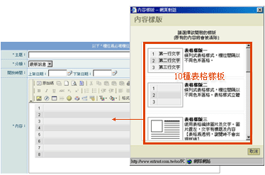 注意!選擇樣版,原本的內容將會全部清除,故請在開始編輯時先選擇樣版。 |