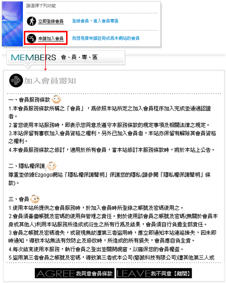 輸入會員需知: 輸入加入會員需遵守的規則。