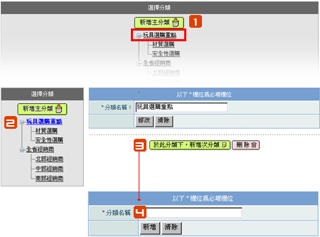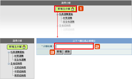 分類名稱: 輸入次分類名稱,按下新增即可完成。