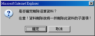 刪除分類時,會出現刪除警訊【注意!資料刪除後將一併刪除此資料的子選項!】,所以請務必確認後再刪除,以免辛苦建立的資料毀於一旦。