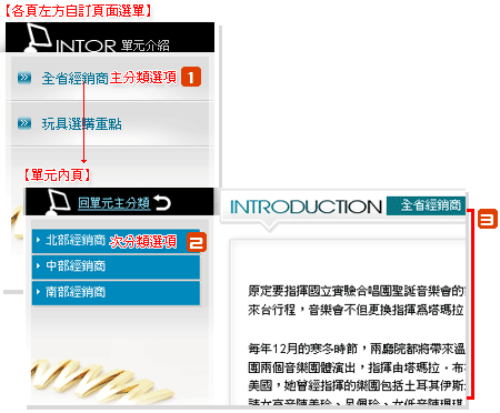 單元介紹選單:此處顯示主分類選項,點選進入單元內頁。