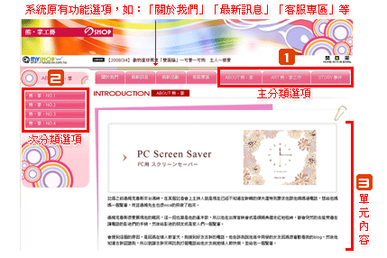 主分類選單:此處顯示主分類選項,點選進入該分類下單元內容。