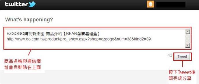 Step3:系統會自動將要分享的網址貼上,點選Tweet後完成分享